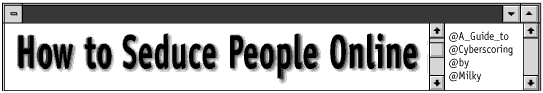 Chatrooms, IRC channels and ICQ chats are excellent places to score the persons possessing the genitals of your choice. But often, sadly, one feels shy and awkward in switching the subject away from smalltalk and actually getting down to business and talking about what really matters.